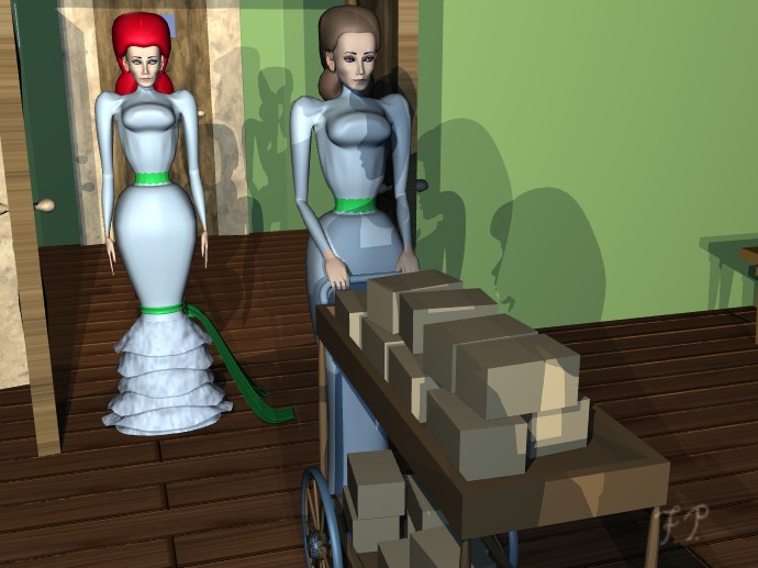... sa robe était entravée par un ruban vert...
